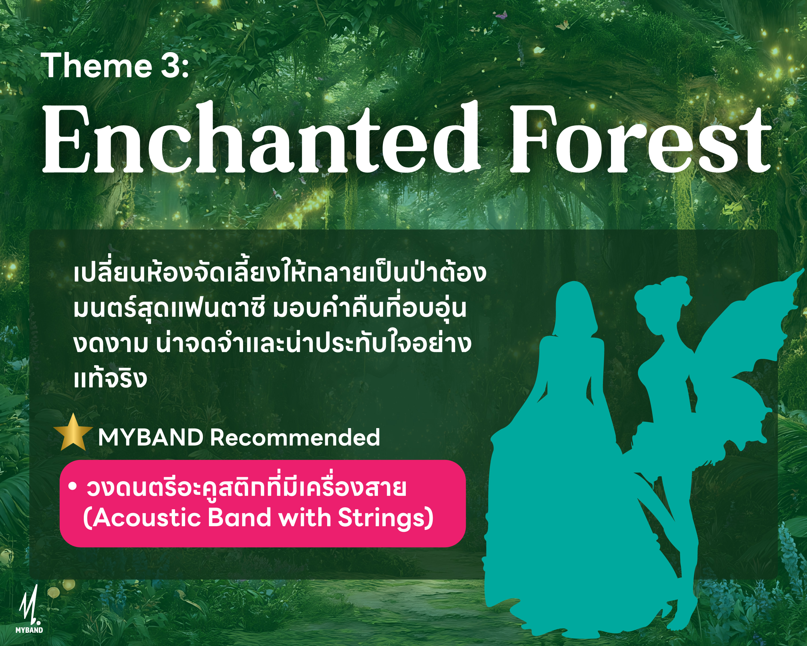 เปลี่ยนห้องจัดเลี้ยงให้กลายเป็นป่าเทพนิยายสุดแฟนตาซี มอบค่ำคืนที่อบอุ่น งดงาม และน่าประทับใจอย่างแท้จริง เหมาะสำหรับองค์กรที่ต้องการสร้างบรรยากาศที่ผ่อนคลายและโรแมนติก
